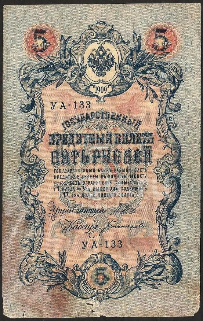 5 рублей 1909 г Шипов - Богарырёв .