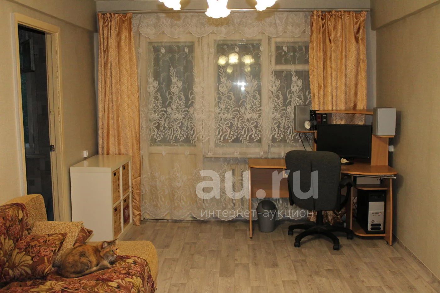 В зале (18 кв.м.): два компьютерных стола, диван-еврокнижка, платяной шкаф.
