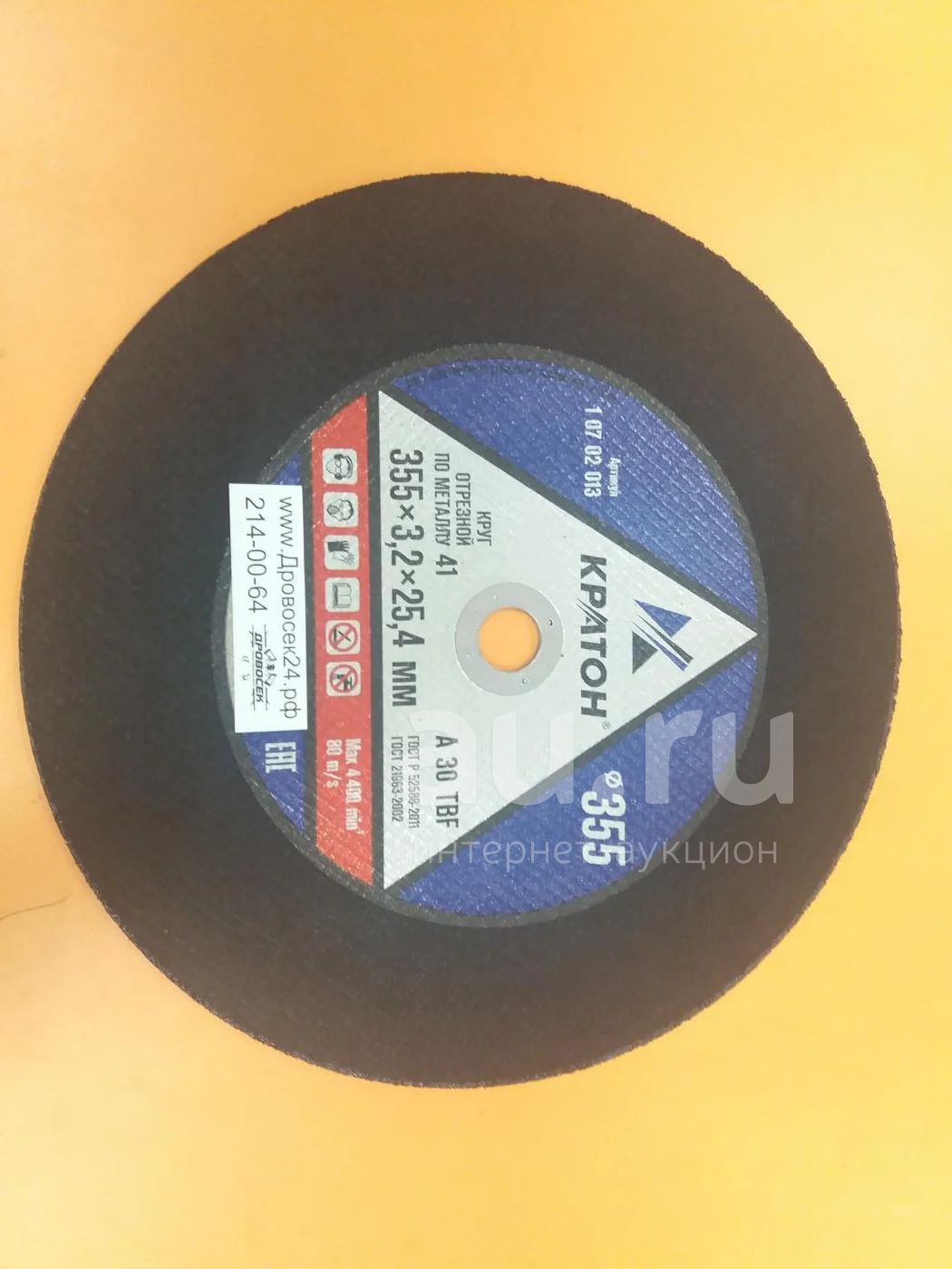 Диск отрезной по металлу 355х25,4 мм Кратон / 1 07 02 013 / диск для бензореза, диск для монтажной пилы, stihl ts 420, 800, абразивный диск, диск для рельсореза, диск для отрезного станка