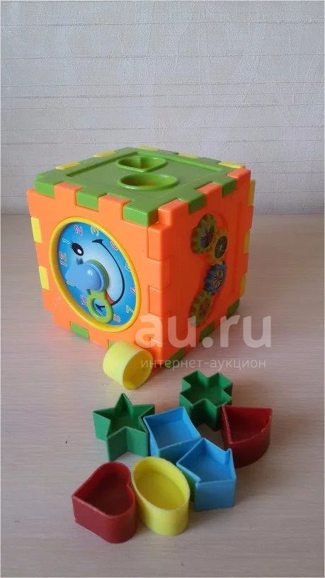 Развивающий кубик-сортер обязательно привлечет внимание всей детской компании. Разноцветные фигурки, часики и вращающиеся детальки развивают воображение и разнообразят игру.