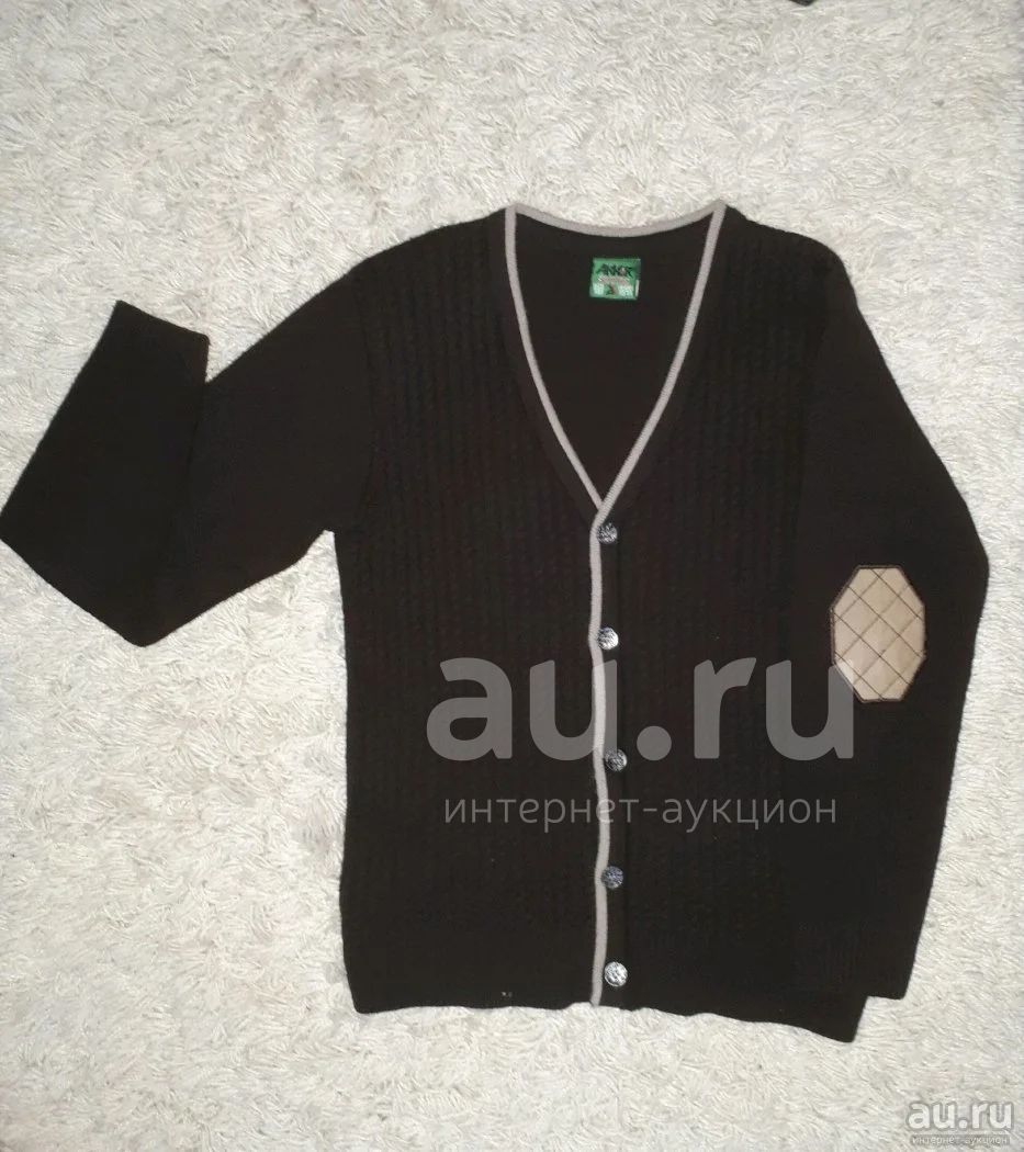 Кардиган на школьника 9-11 лет с заплатками на локтях. Красивый шоколадный цвет, в хорошем состоянии.