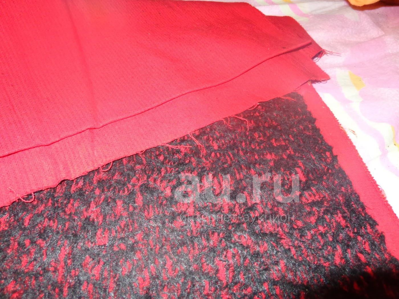 Ткань красного цвета с черным ворсом. отрез 122 * 250.