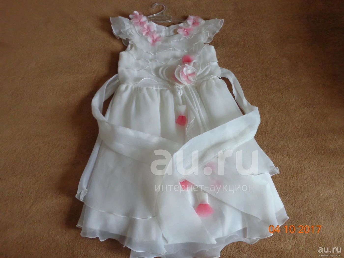 Нарядное платье бледно-молочного цвета с нежными цветами для маленькой принцессы 4-5 лет, рост 120/60. Платьев в отличном состоянии, длина от плеча до низа 70см., ширина в груди 31 см.