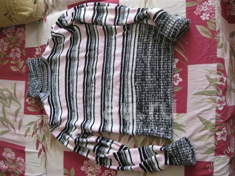 на дачу или в лес.в катышках, немного растянуты рукава.теплая, машинная вязка, с горлом высоким,