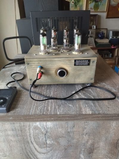 Связка фонокорректора Никитина Creek (работы Константина Бабина) с ламповым фонокорректором Little Bear t7 (в данном случае он использован как ламповый буфер - предусилитель), на нем есть переключатель Phono/Aux. Вместе они дают хорошее усиление и мощный звук, свойственный транзисторному Creek, и широкую сцену с воздухом и объемом, свойственному лампе. На ламповом установлены американские 5654W. Сравнивал с несколькими фониками, всё, что дешевле 40000 рублей (в магазине) играет хуже в разы!