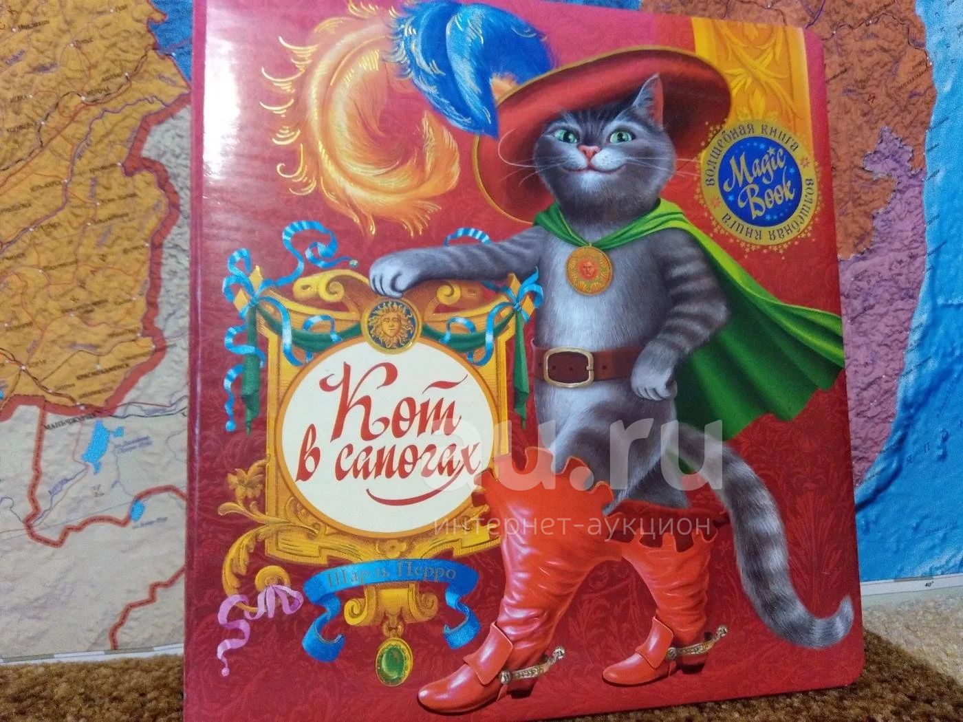 Сказка Шарля Перро - Кот в сапогах. Твёрдый переплёт и страницы, на каждой странице яркие иллюстрации облегчающие ребёнку восприятие текста. Шрифт крупный, легко читабельный. Голосовой электронный блок - батарейки ещё живы. Состояние отличное.