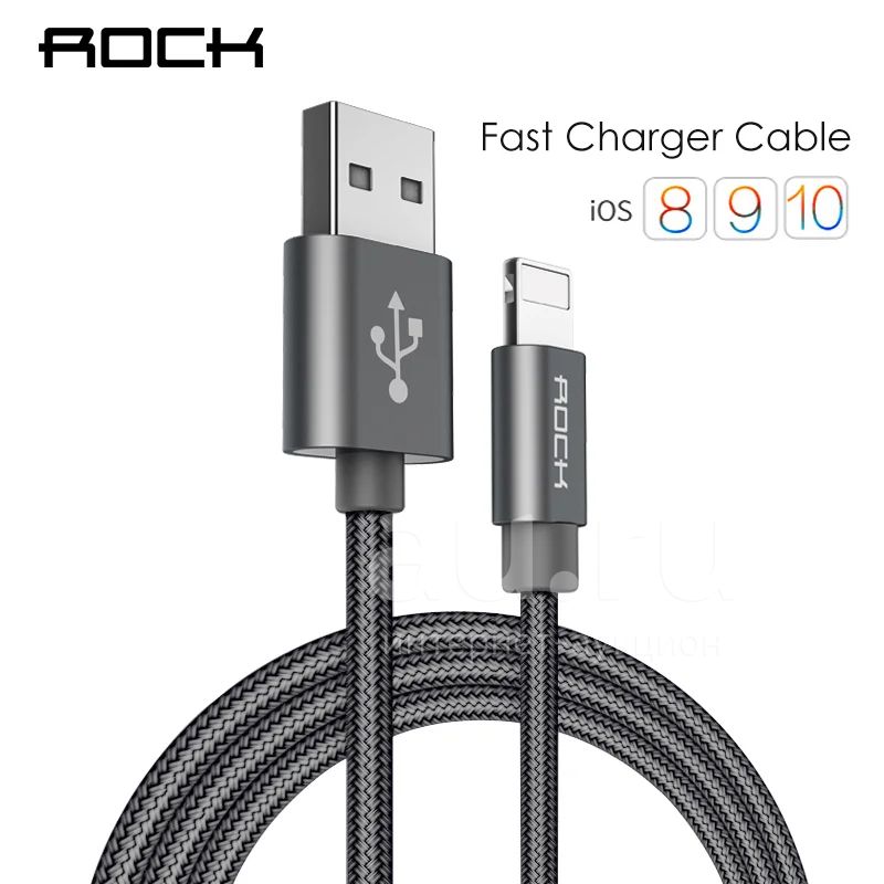 USB дата кабель ROCK Lightning 8 Pin (совместимый с iOS 10) для синхронизации и зарядки Apple iPhone 5/5S/5C/SE/6/6S/6 Plus/7/7S/7 Plus/8/X /iPad 4/Mini/Air / iPod Nano 7/touch 5. в тканой оплётке из нейлона (повышенной прочности) 1м. серебристый
