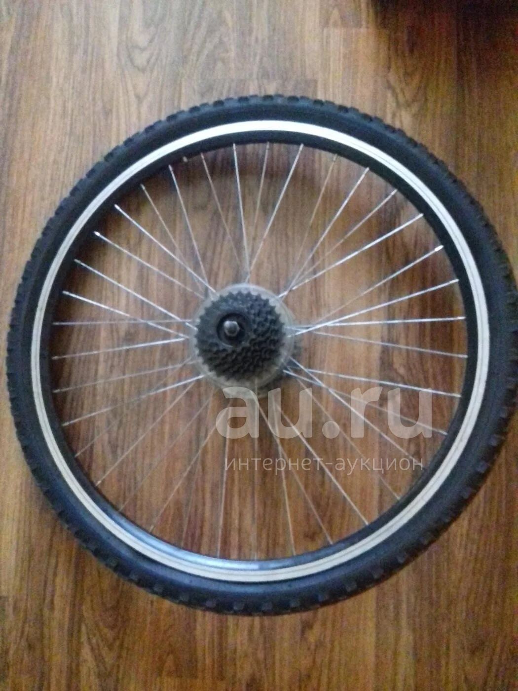 Двойной алюминиевый обод. Стоит насыпная фтулка под болты. Новая трещетка 7 передачь смазаная. Защита спиц, ротор 140 диаметр. Колесо с камерой, в передачу лысая резина на докатку.