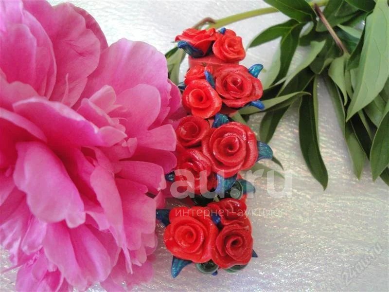 Изделия из полимерной глины,браслет"Букет алых роз".Авторская работа.