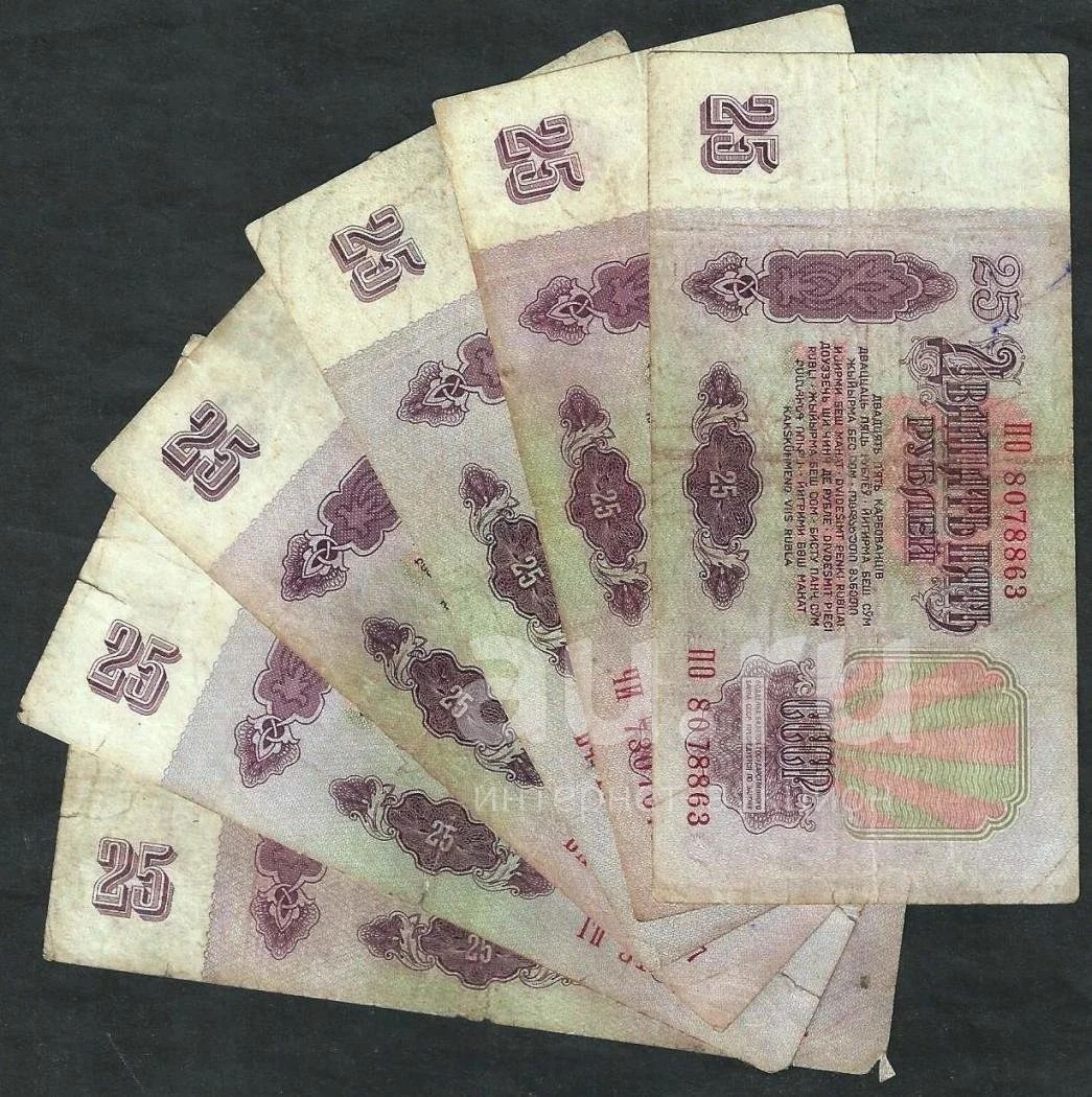 25 рублей 1961г .СССР . ( 6 шт ) одним лотом с рубля .