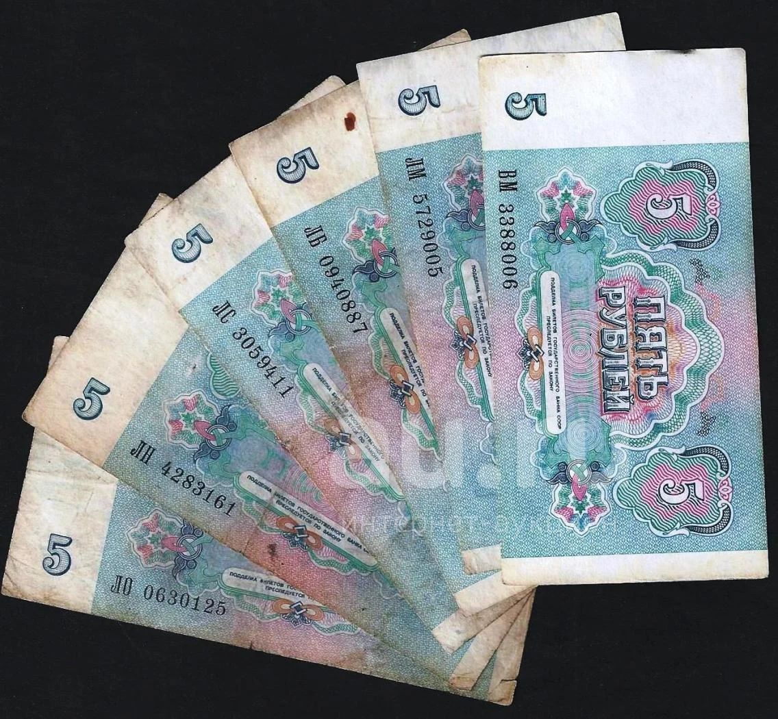 5 рублей 1991г . (6 шт ) одним лотом с рубля .