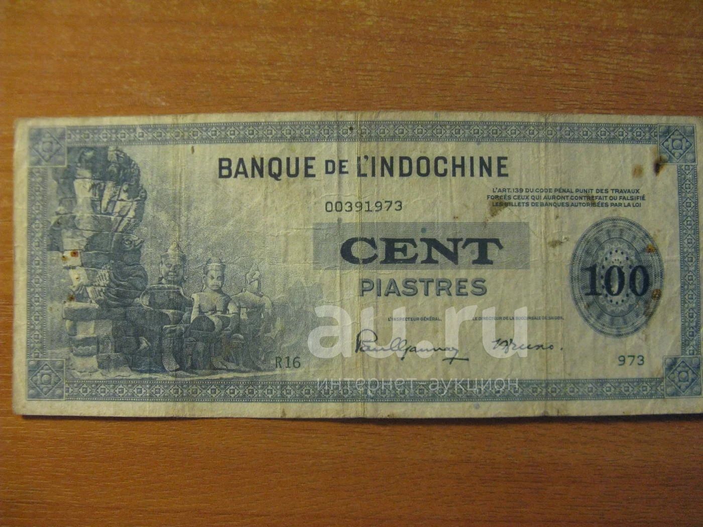 Банкнота, имевшая хождение на территории французских колоний в Азии (современный Вьетнам, Лаос, Камбоджа и часть Китая).
