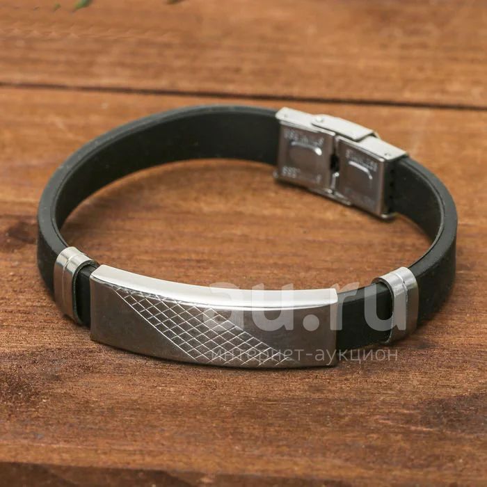 Мужской браслет "Стиль" с узором (каучук, сталь)