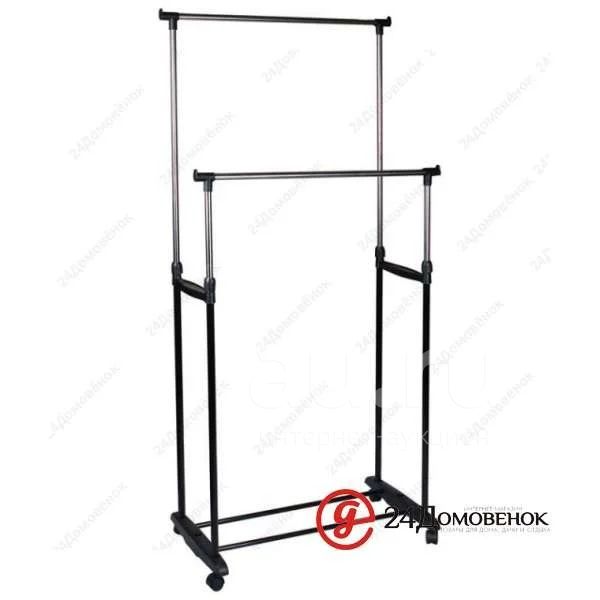 Вешалка напольная CR465 на колёсах 2 перекладины размер: 78*42*93*168 см. Доставка.