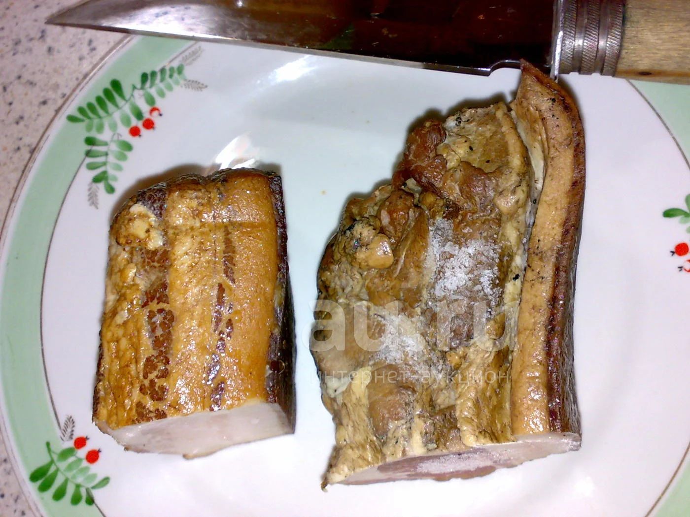 Не избавляюсь, а делюсь. Ехали с маны, взяли в деревне в двух разных местах. Оба куска вкусные, на одном шкурка твердая, так как ближе к сырокопчению. Общий вес 440 грамм, убрал в морозилку. Забирать по условиям передачи.