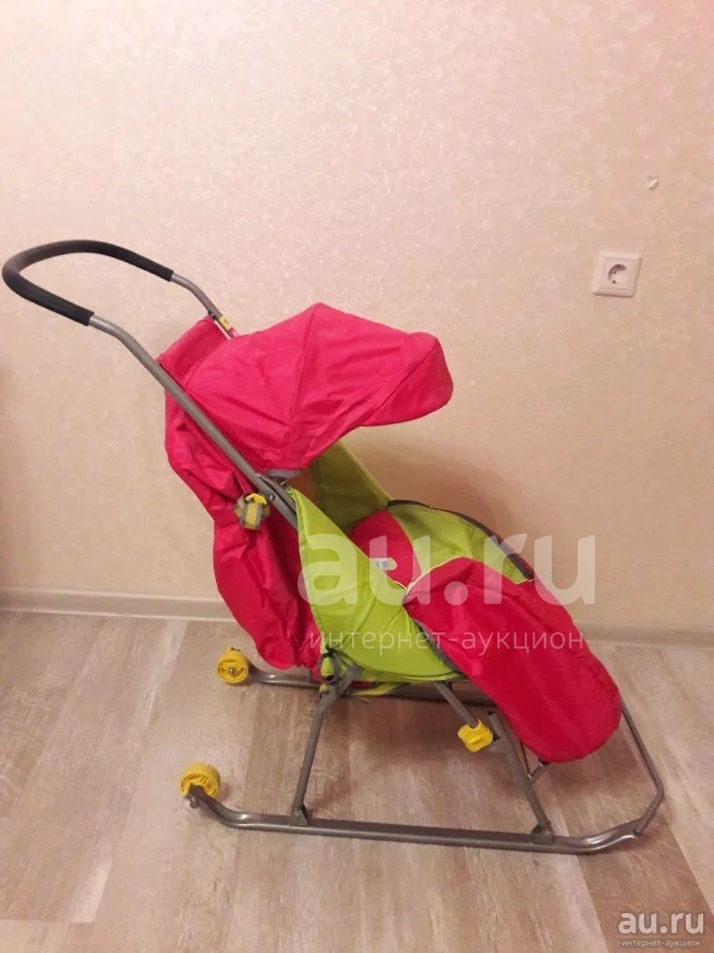 В отличном состояни. Складные санки с чехлом на ножки. Чехол на ножках слитный, отдельно не снимается. Для стирки можно снять чехол подностью. 5-точечные ремни безопастности.
