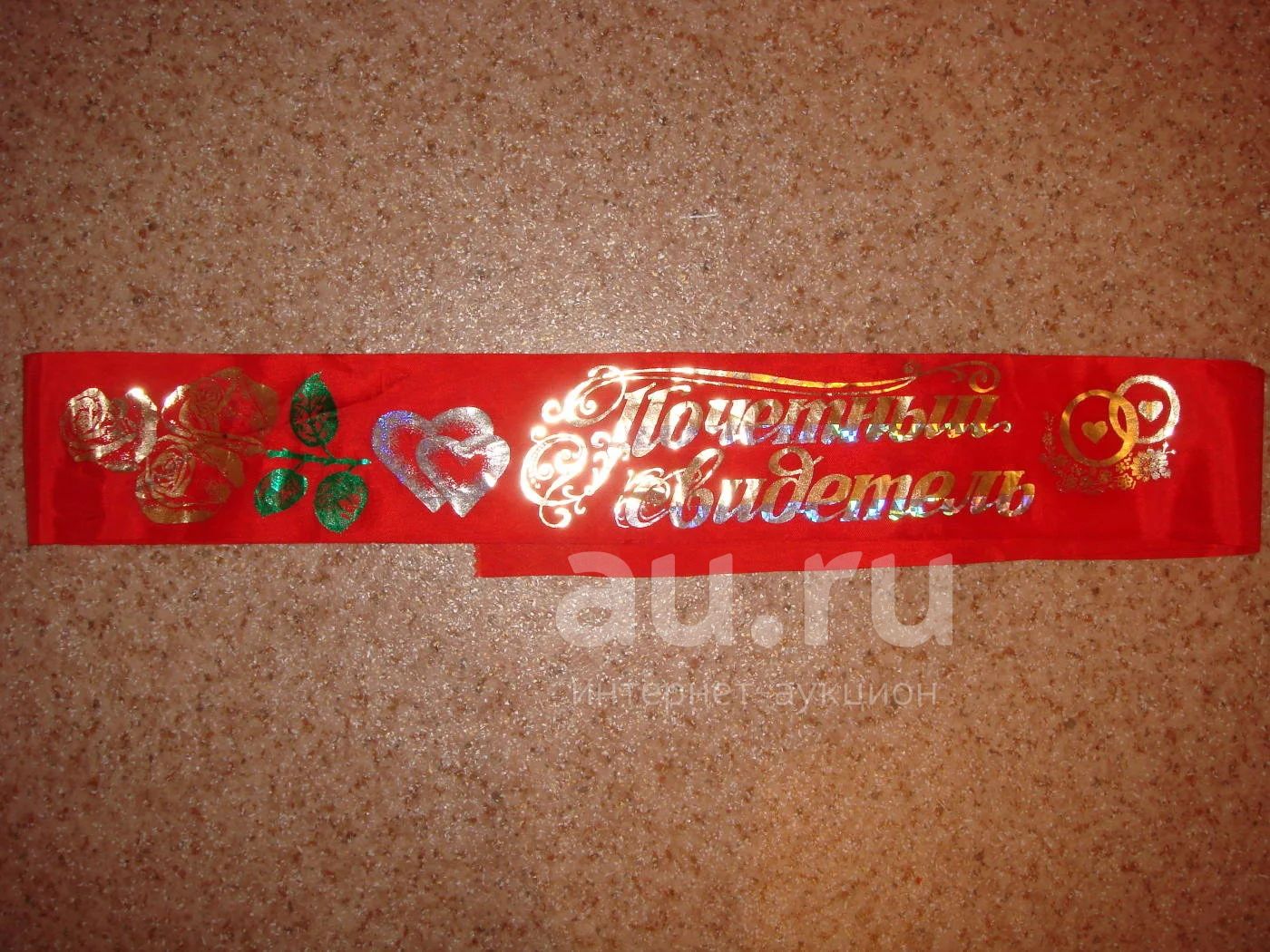 Лента свадебный аксессуар "Почетный свидетель". Алая с золотым тиснением. 1 шт. Размер стандартный.
