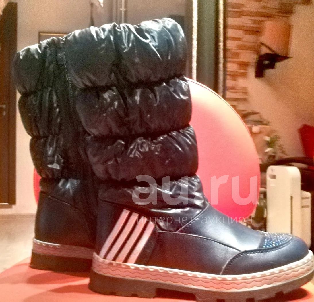 Новые зимние сапоги со стразами, на замке из овчины. Размер 35.