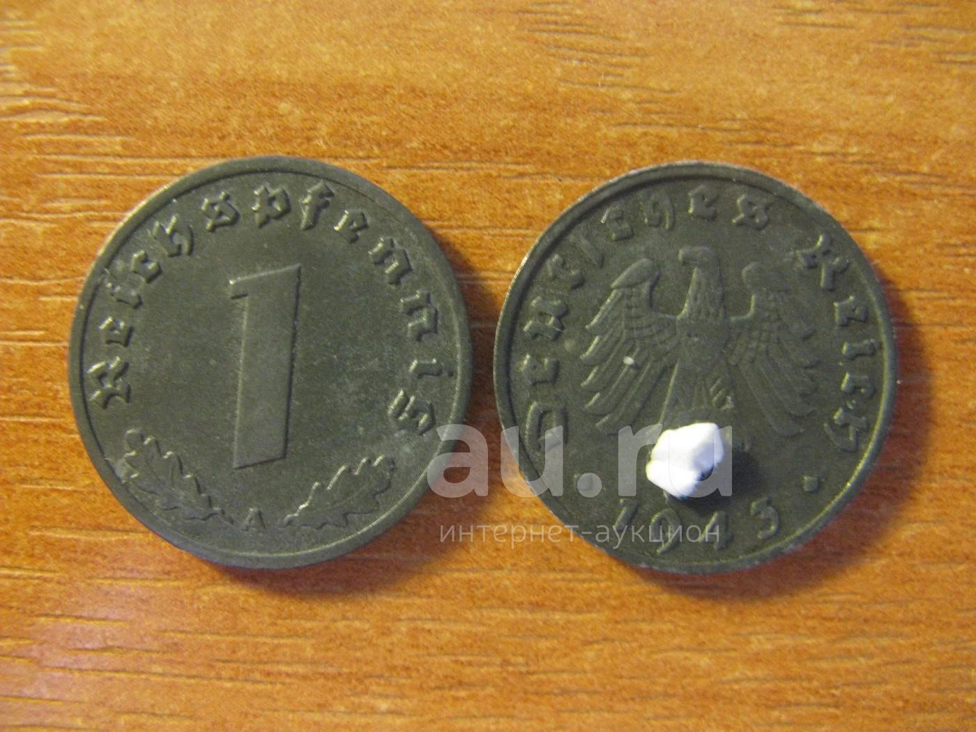 Германия 3 Рейх. 1 рейхспфенниг 1943 года. A. Цинк. Свастика. Отличная.