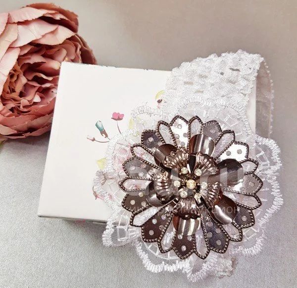 Повязка на голову "Металлический цветок" для маленькой принцессы.