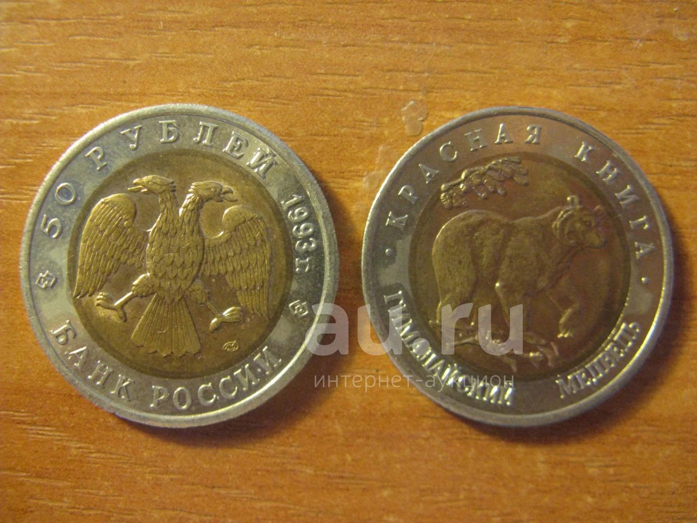 50 рублей 1993 года. Красная книга. Гималайский медведь. Биметалл. Отличная.