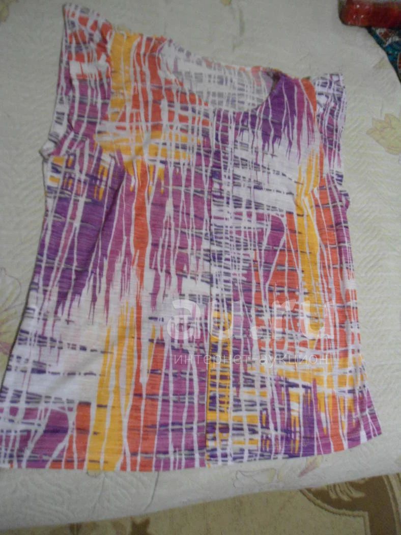 тоненькая очень лёгкая р-р 52-54.весёлой яркой расцветки.рукава- крылышки.надела пару раз.по спине длина 55см