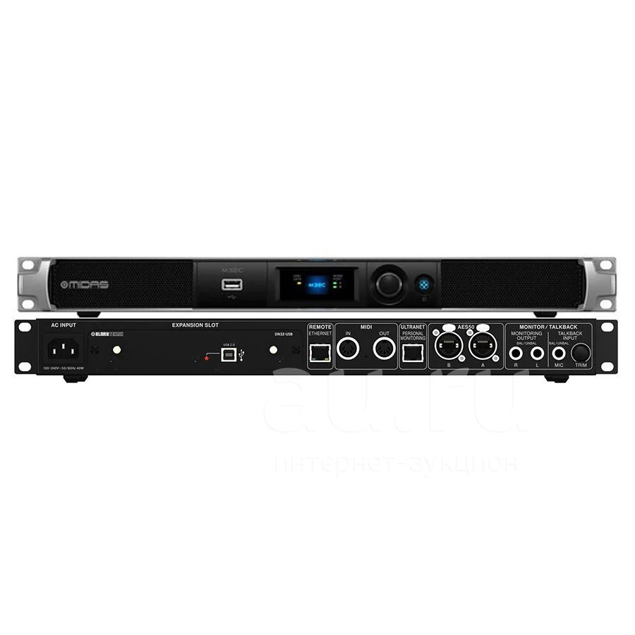 Модель M32C это сверхкомпактная версия, представляющая собой микширующий модуль в рековом корпусе высотой всего 1U. Управление блоком осуществляется по сети и с помощью програмы MIDAS Apps для iPhone и iPad