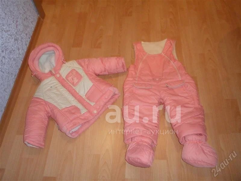 Персиковый комбинезон (фирма Батик), рост 80 (большемерка, на ребенка 1,5-2х лет), комбинезон трансформер на овчине, отдельно куртка и полукомбинезон, который делается мешком. Носили пару раз как запасной вариант.
