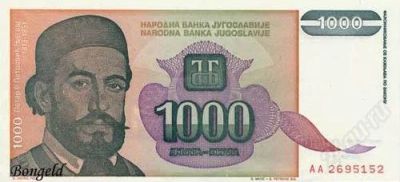 1000 динар 1990,91,94 года. Смотрим реальное Фото.
