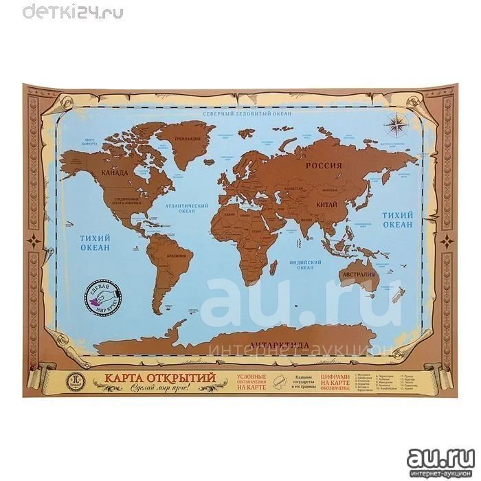 🕮Карта мира (открытий, путешествий) со скретч-слоем, 70x50 см 📚Энциклопедия