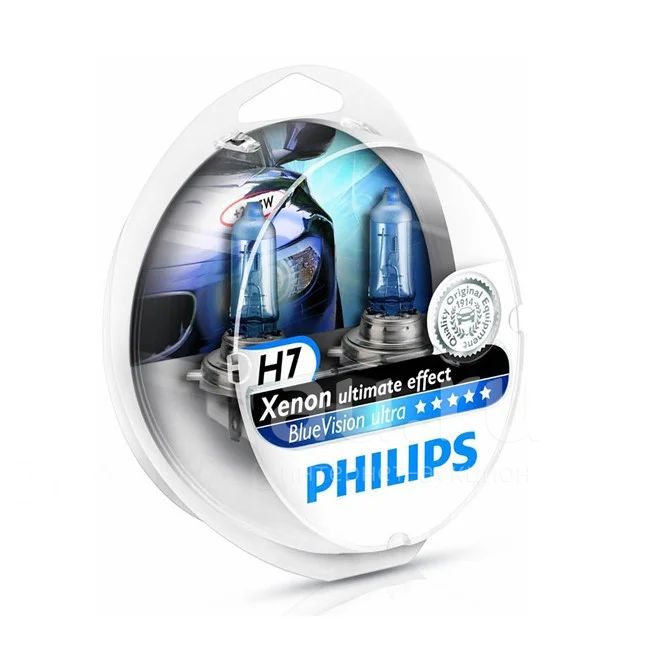 Артикул 12972BVUSM. Предлагаю абсолютно новый комплект галоген лампа Philips H7 BVU 12V 55W PX26d Blue Vision ultra - светят белым светом (Пластиковая упаковка - лампа Н7 - 2 шт. + лампа в габариты белого свечения W5W - 2 шт.) Оригинал.