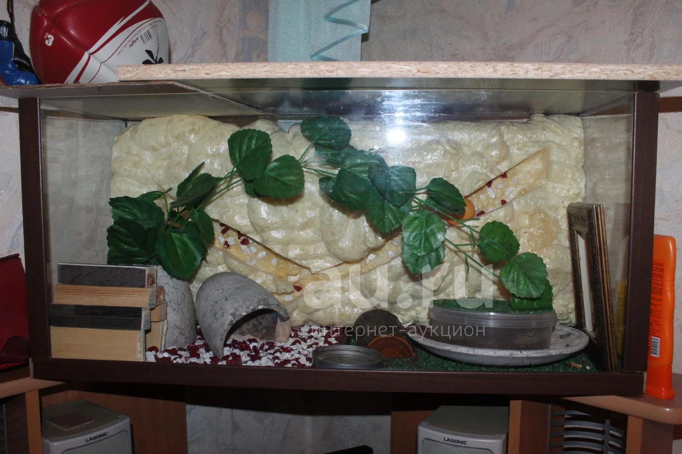 Продам террариум со всем декором, размер 70x45. Делала полностью своими руками. Нет верхней крышки или сетки, для того, чтобы рептилия не выползла. Состояние хорошее.