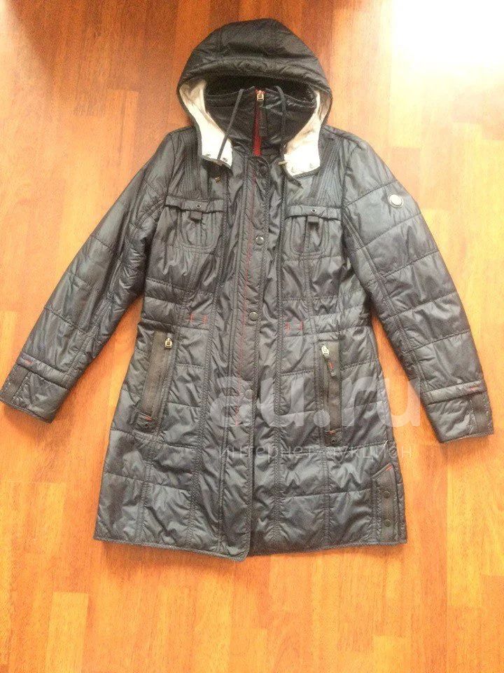 Куртка удлиненная, фирма "Ветра.нет", цвет темно-синий холодный, замок застегивается, но немного "размохрился внизу" и кнопочку одну нужно поменять, но её не видно.