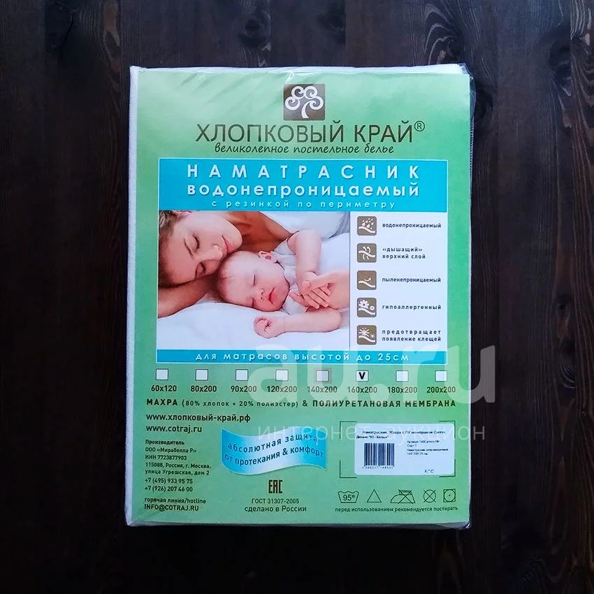 Непромокаемый наматрасник для матраса 160х200 см защищает матрас от влаги, а так же пыли и других загрязнений.