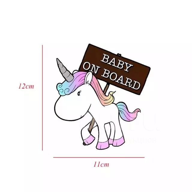 Наклейка на авто ребенок в машине baby on board единорог