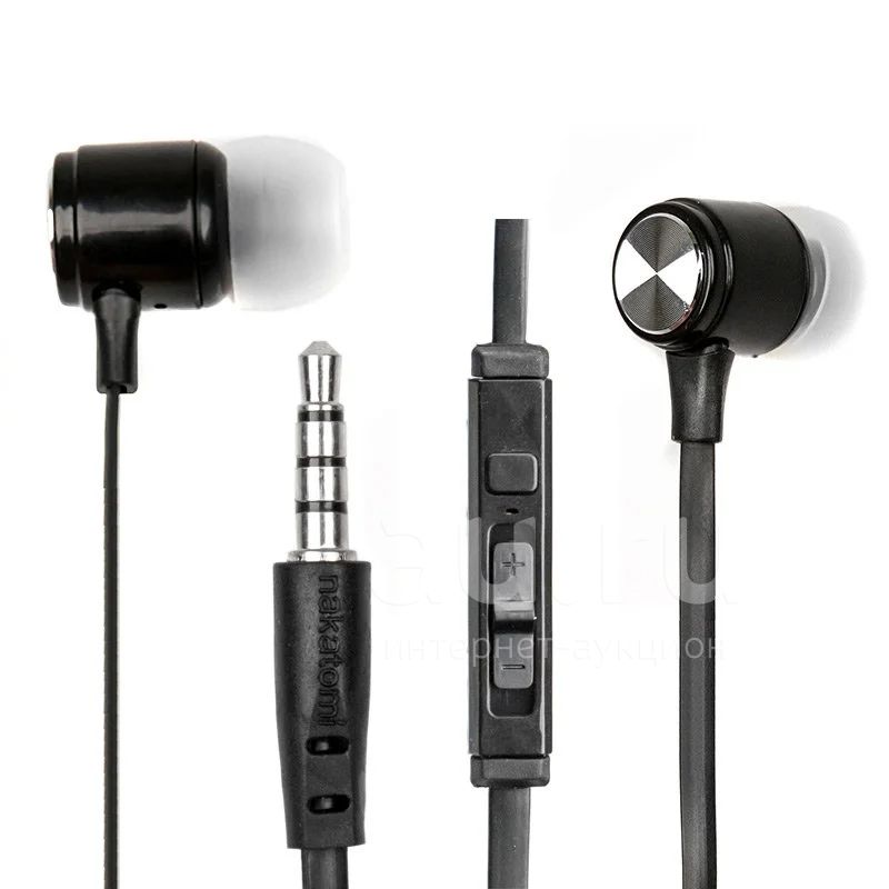 Наушники с микрофоном Nakatomi ES-B31 Black вкладыши канальные, кнопка ответа, регулятор громкости (гарнитура для iPhone, Android, PC)