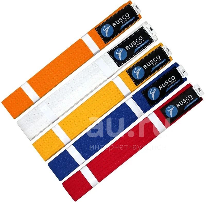 Пояс для единоборств (белый, желтый, красный, зеленый, синий, оранжевый, коричневый) 260, 280 см