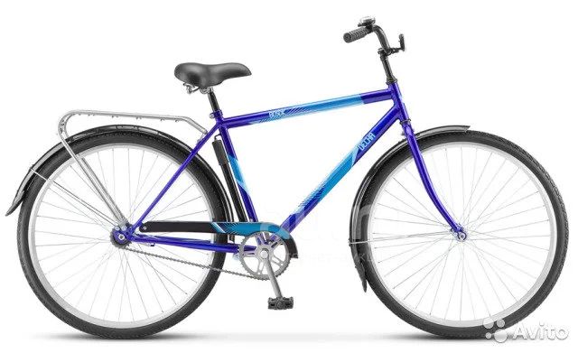 Дорожный велосипед начального уровня без переключения передач. Технические особенности: прочная стальная рама, жесткая вилка, двойные алюминиевые обода, ножные педальные тормоза, длинные крылья, стальной багажник, защита цепи, звонок, насос.