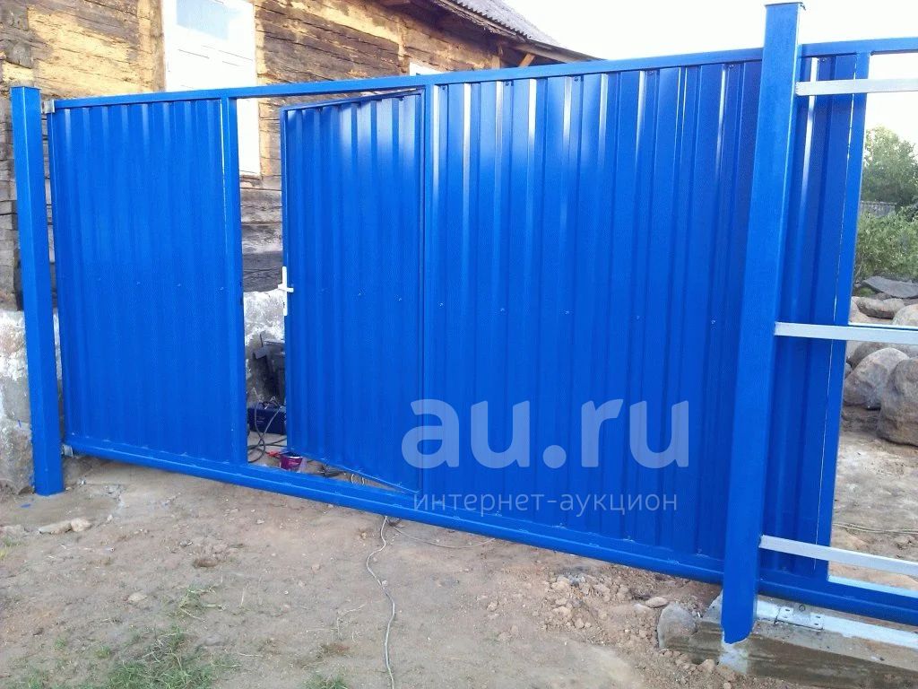 Ворота откатные с калиткой. Размер рабочей части ворот 4х2 метра. Калитки 1х2 метра. В комплект входит: рама, профлист, механизмы, замок на калитку.