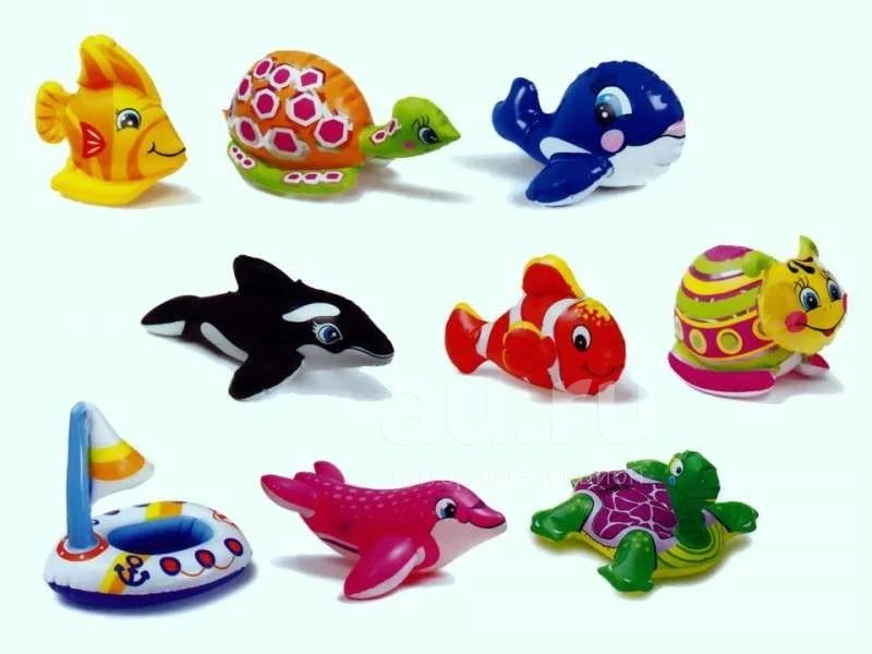Игрушка надувная в ассортименте Puff'n Play Water Toys 2+ лет INTEX 58590 Надувные игрушки Intex 58590 для плавания в ассортименте (9 видов) предназначена для детей от трех лет. Очаровательные надувные игрушки для ванны и бассейна - с такими игрушками Вашему малышу не будет скучно. Система безопасности ребенка прочный протестированный винил. Тропическая рыбка Черепашка Морской львёнок Весёлая уточка Синий китёнок Касатка Веселая рыба Клоун Лодочка Динозаврик