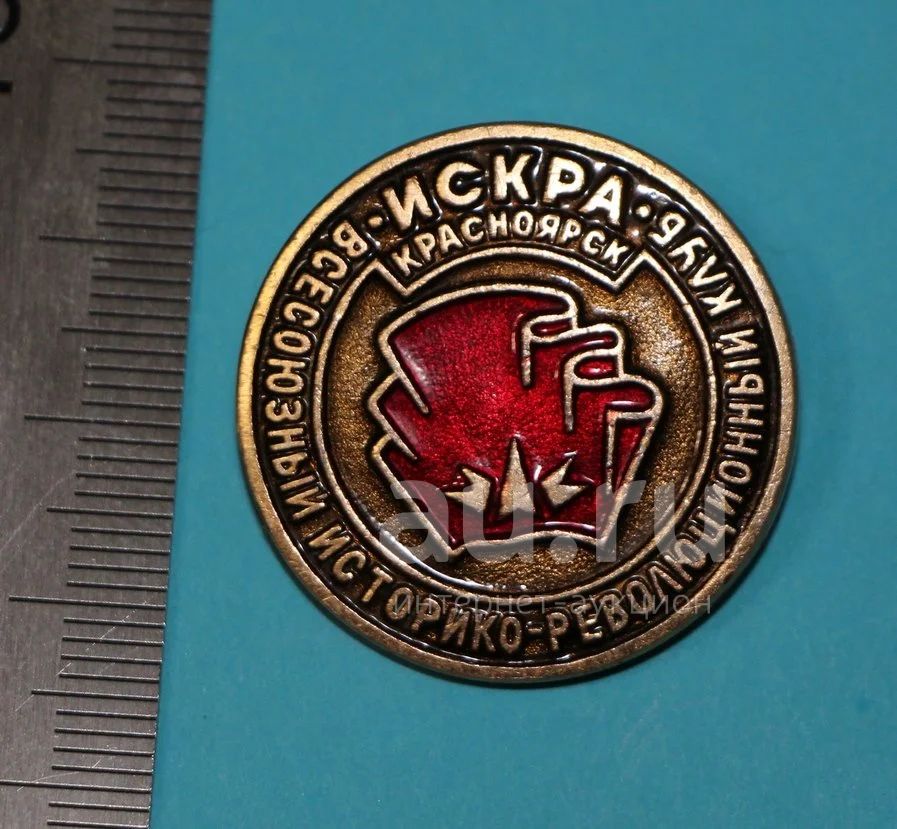 Нечастый значок: "Искра" Всесоюзный историко-революционный клуб. Красноярск. (Пл. ВЛКСМ, комсомол, пионерия).