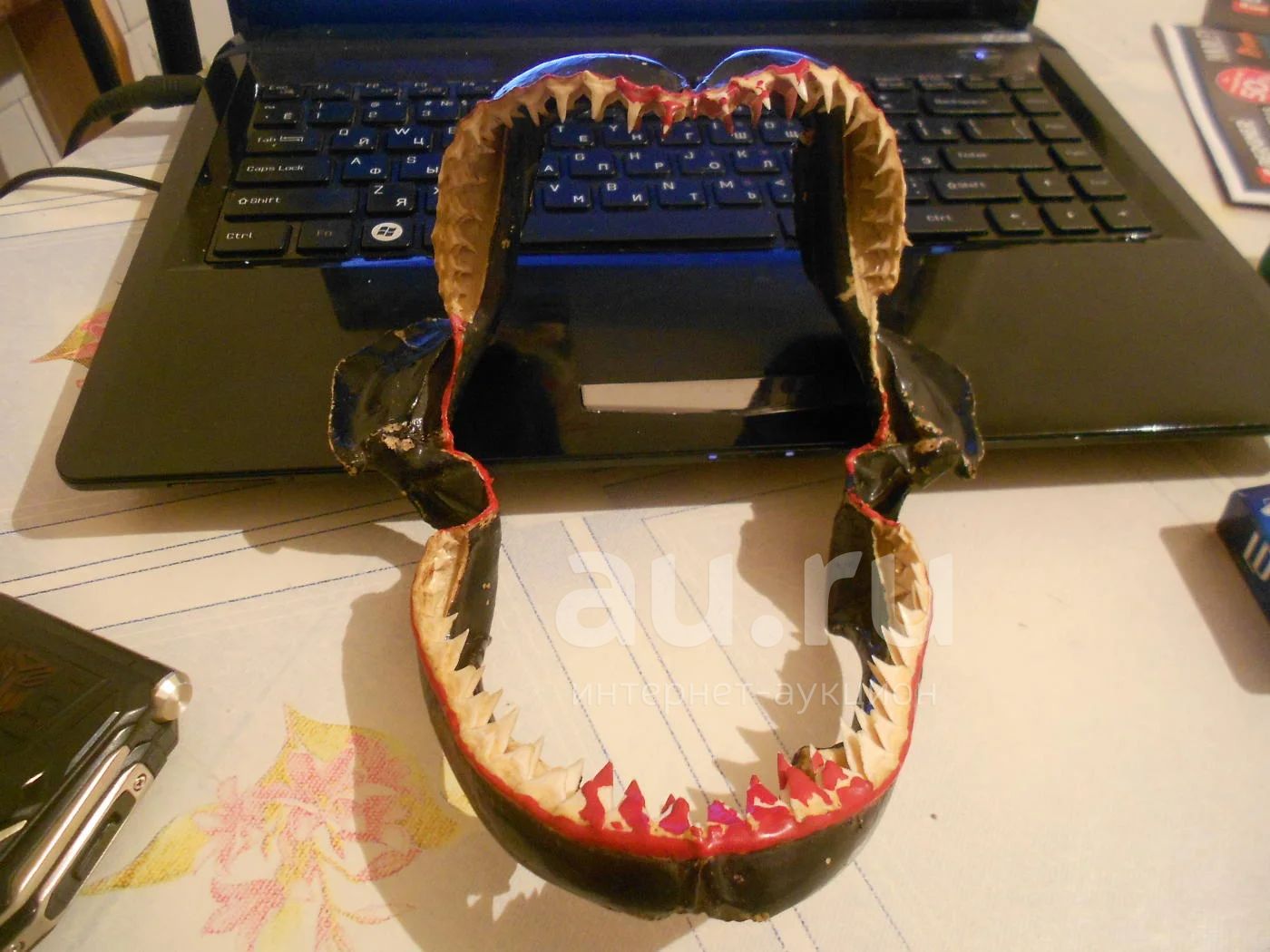 Продам челюсть акулы зубы очень острые немного покрашены.челюсть не бутафория и не подделка .