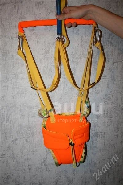 Прыгунки простой конструкции, к кольцом сверху. Карабины можно отстегнуть и использовать как вожжи.