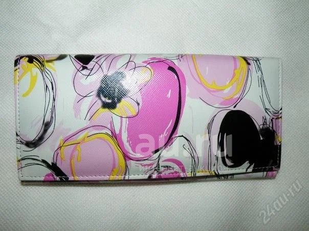Кошелек-портмоне, внутри несколько отделений для денег и кредитных карточек. Размеры 19*10 см. Состав - иск. кожа и ткань.
