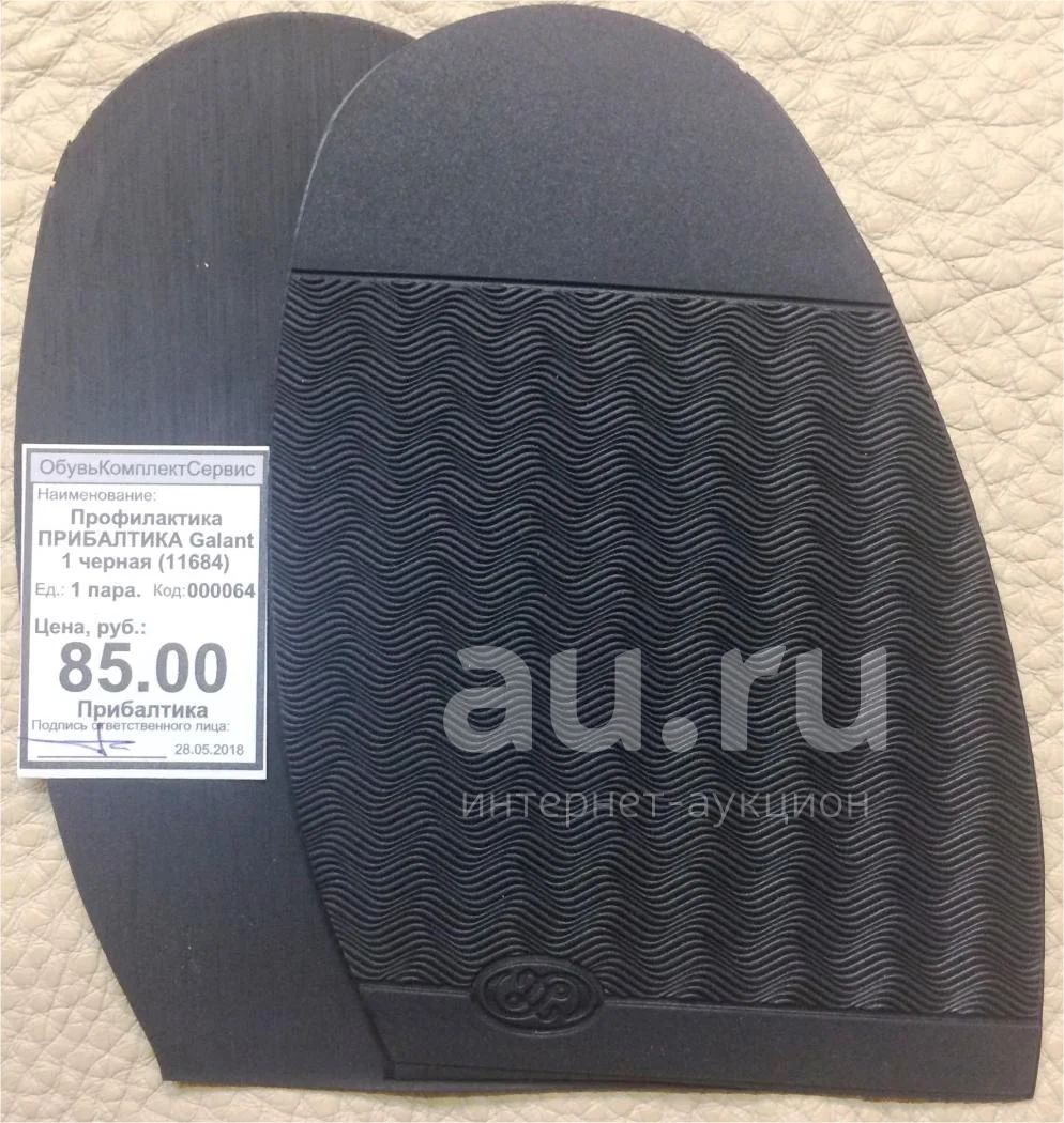Профилактика формованная ПРИБАЛТИКА (накат, подметка, наклейка) - наружная деталь низа обуви, по форме и размерам соответствующая носочно-пучковой части подошвы, предназначенная для увеличения ее износостойкости. Обладает отличной износоустойчивостью, хорошо клеится.