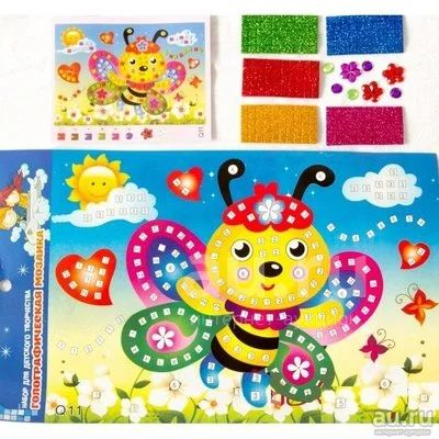 Мозаика с перламутровыми наклейками, размер 17*24 см. Пчелка.Новая
