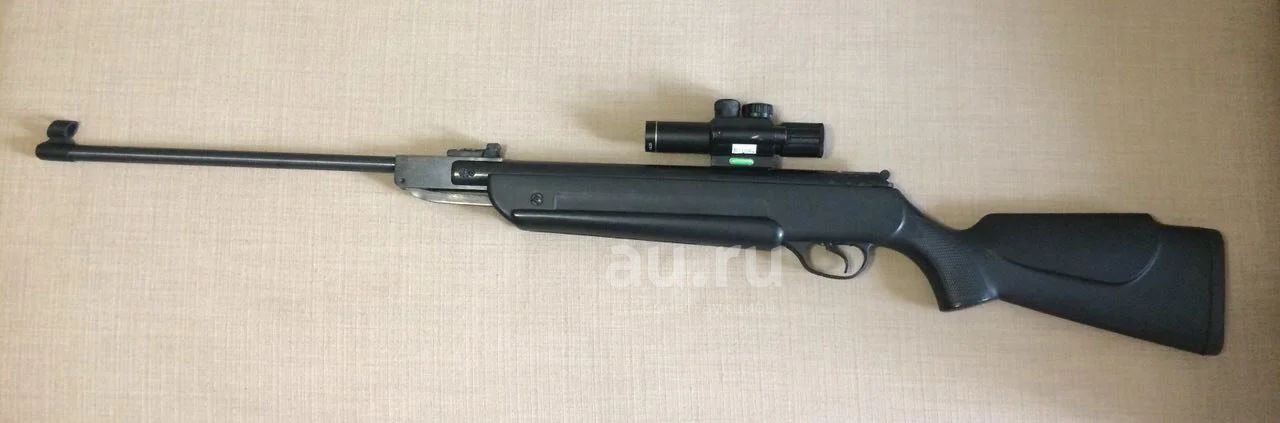 Отличное состояние, отстрелена одна не полная банка пулек, усиленная пружина. В комплекте оптика c красной/зеленой подсветкой сетки и ЛЦУ, шомпол, оставшиеся пульки. Сертификат соответствия.
