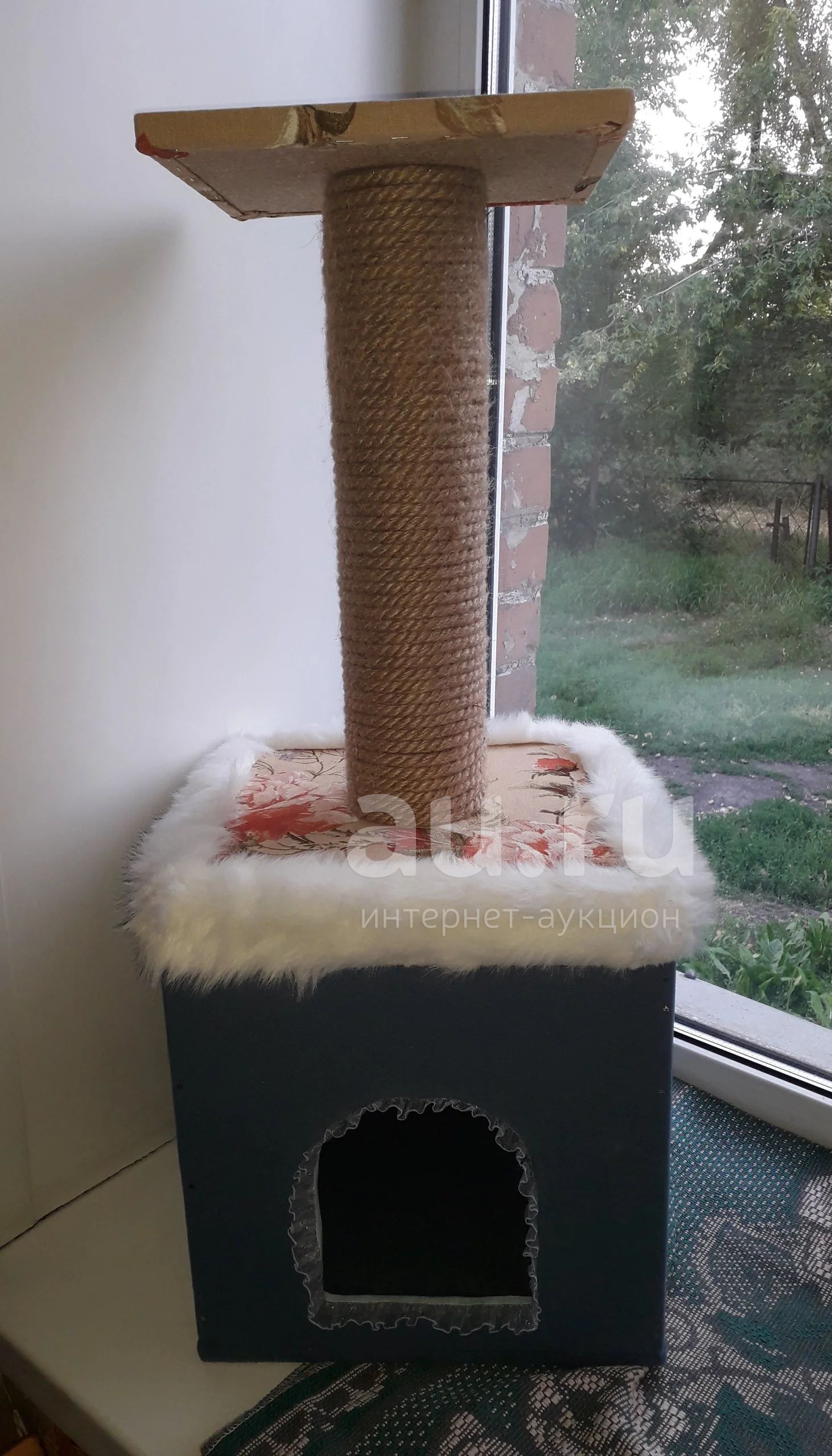 когтеточка почти новая, моя кошка добралась подергала слегка, но у неё есть другой домик.. а эту я сейчас поставила высоко на шкаф