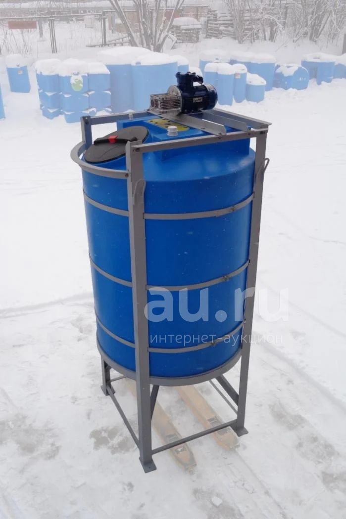 Есть пластиковая емкость на опоре.