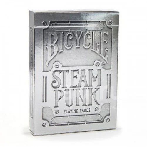 Серебряная версия карт в стиле стимпанк от Bicycle. На смену меди пришла сталь. В дизайне рубашки, туза пик и джокеров используются изображения различных механизмов. Фольгированный коробок, благодаря глубокому тиснению, кажется выкованным из стали.